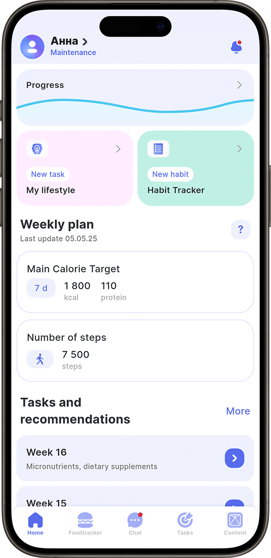 В потоке тебя ждут 32 задания по грамотному наполнению рациона и формированию образа жизни.